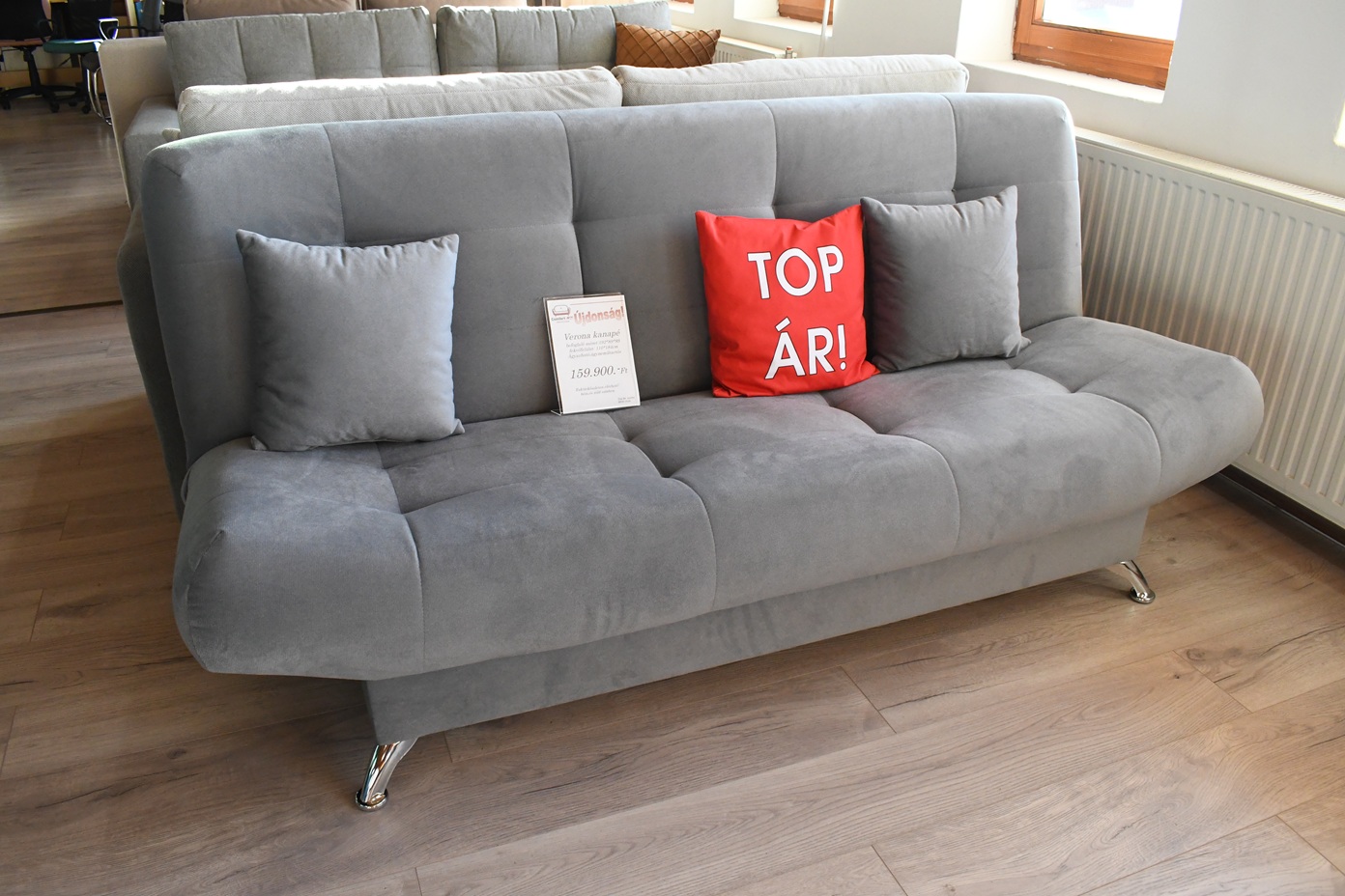 A képek nem tükrözik teljes egészében áruházaink aktuális állapotát. Kínálatunk folyamatosan változik. Gyere el hozzánk, nézz körül és próbáld ki kárpitos bútorainkat személyesen is!