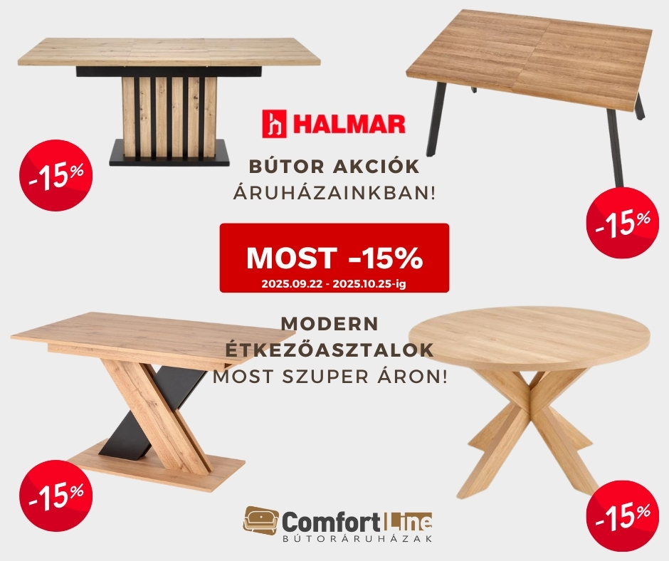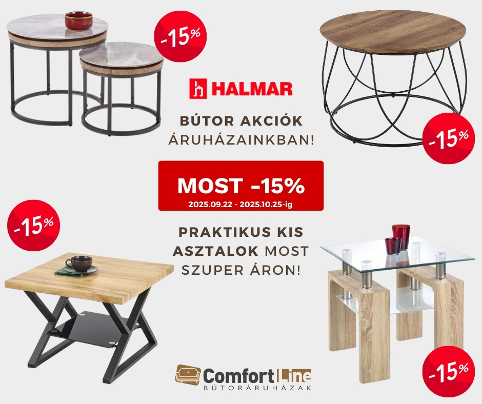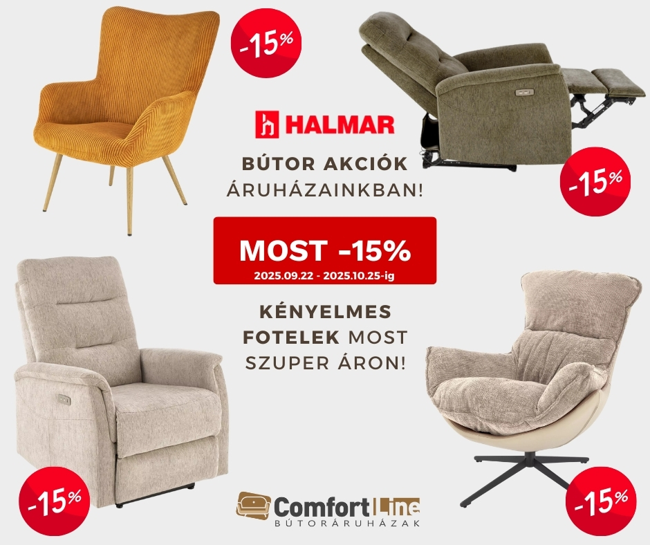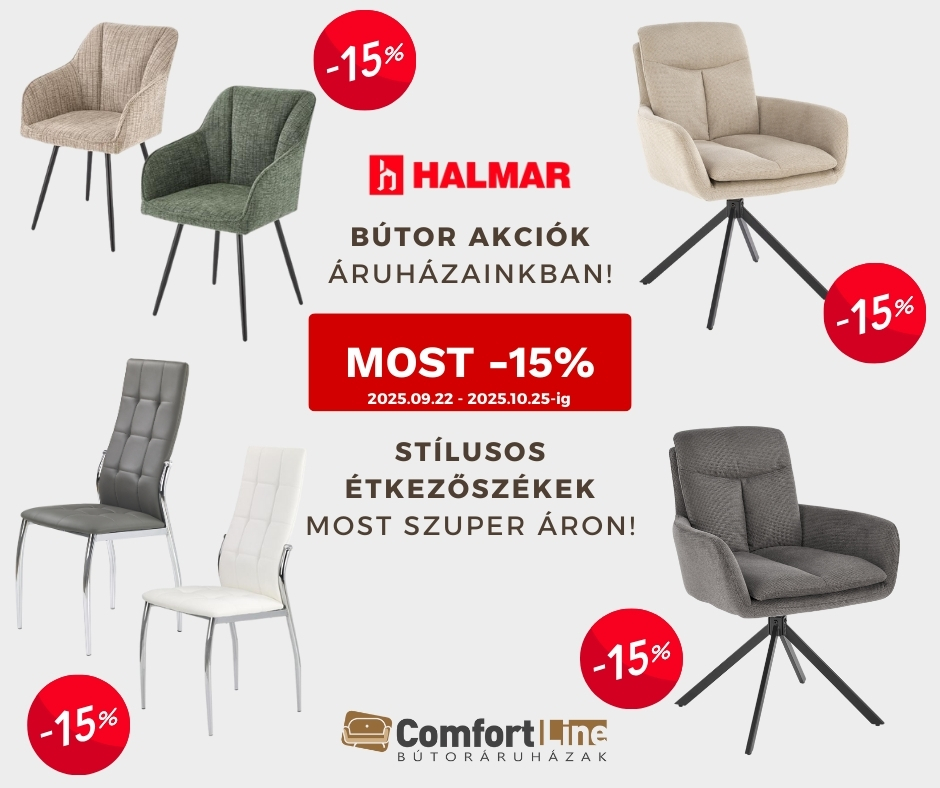Népszerű bútorok most 15% kedvezménnyel Keszthelyen - őszi Halmar akciónk!