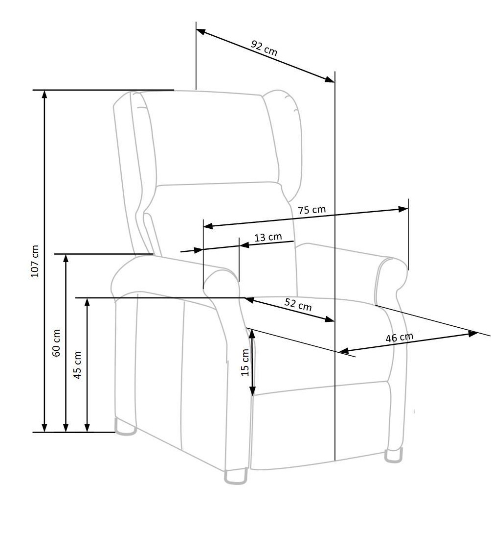 Keskeny karfás, helytakarékos kivitelben, kedvező áron. A manuális relaxfunkció a fotelt még komfortosabbá teszi, ideális választás olvasáshoz, tévézéshez, pihenéshez. A támlát megdöntve a lábrész kiemelkedik, így a fotelben pihenő / fekvő pozíciót vehetünk fel.