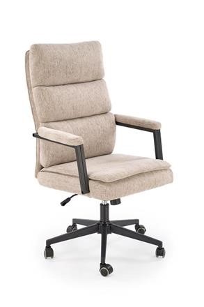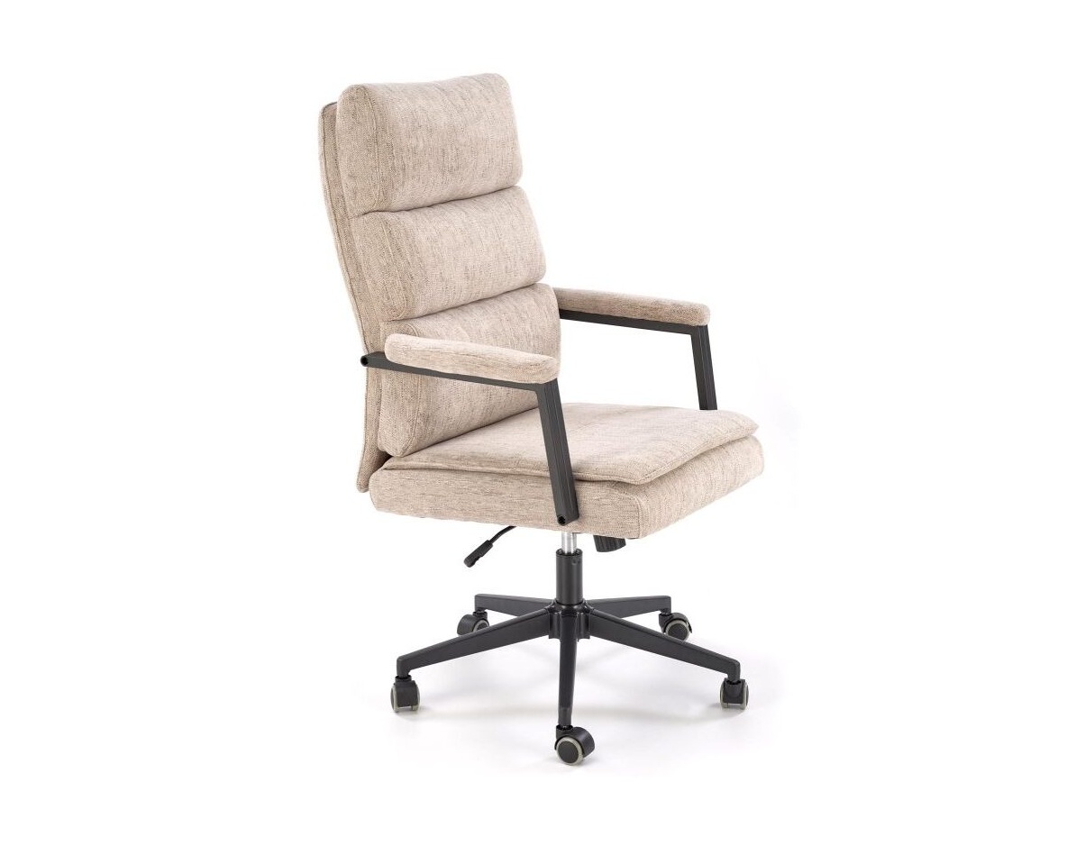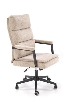 Kényelmes, magas háttámlás főnöki forgószék bézs kárpitozással, vastag szivacspárnázattal a hosszú munkanapokra.