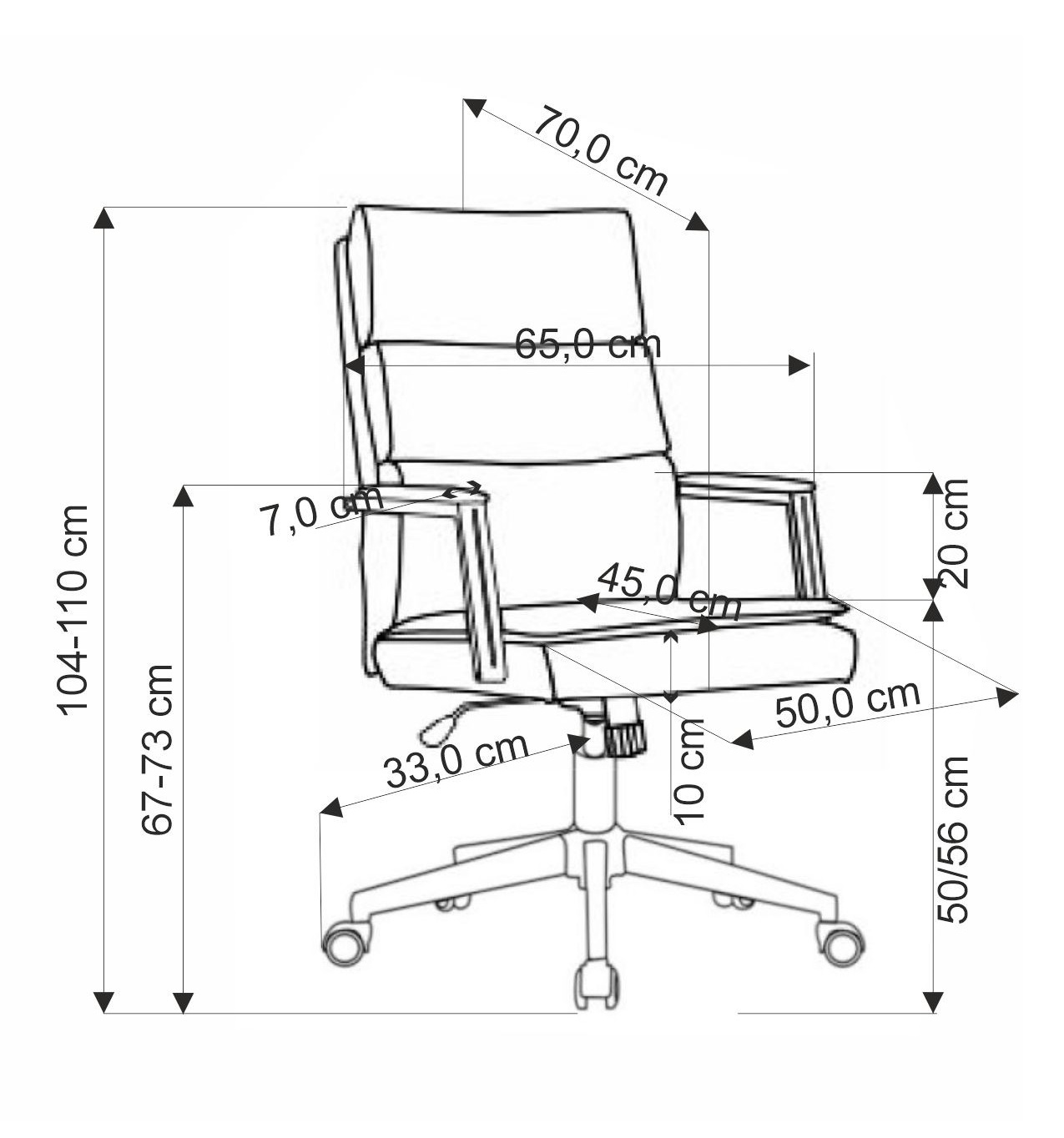 Méretei: 65 cm széles, 70 cm mélység 104–110 cm magasság