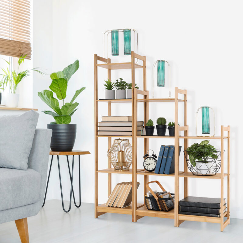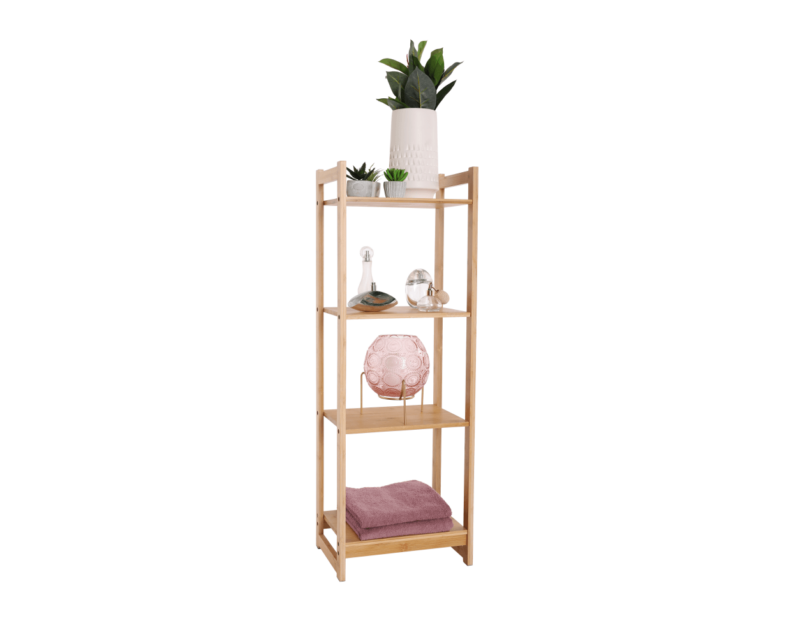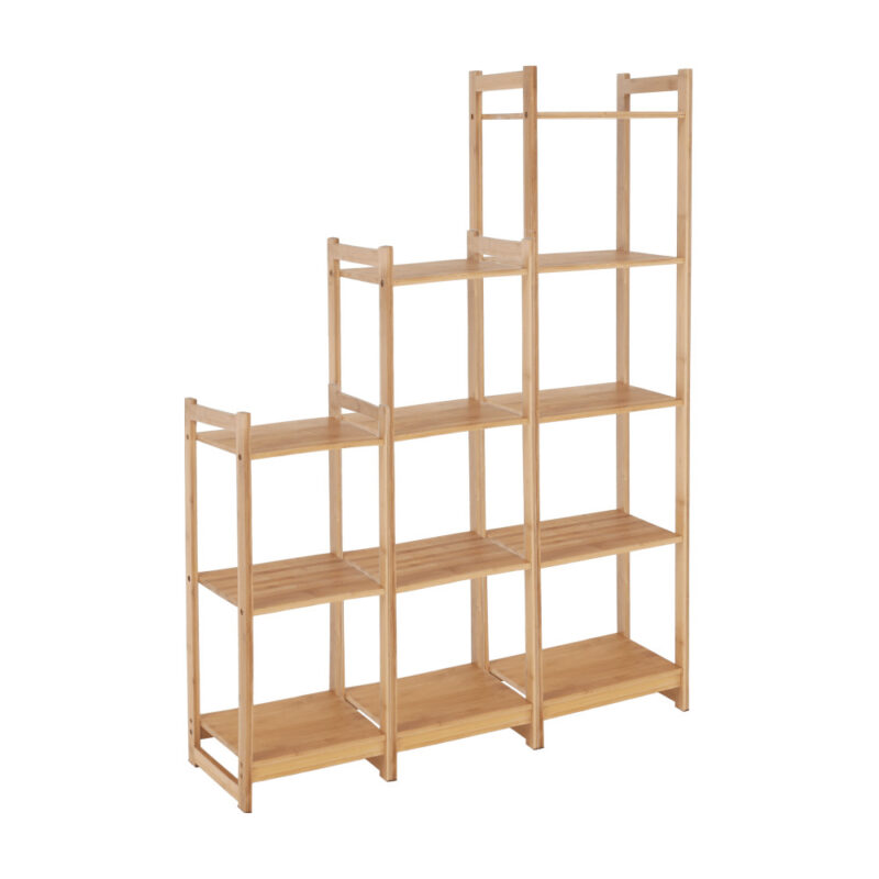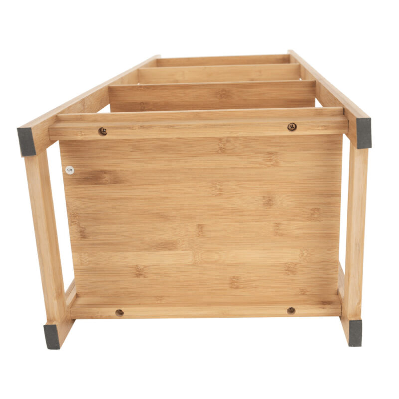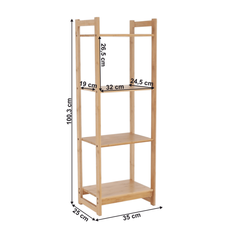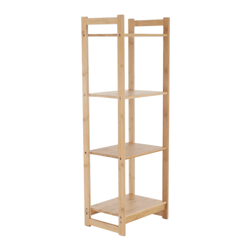 Többfunkciós polcállvány natúr színű lakkozott bambuszból.