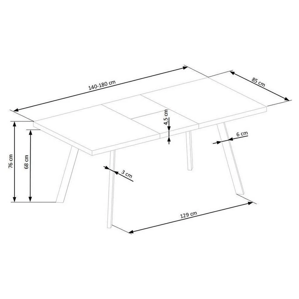 Az asztal kétféle mértben is kapható, 140 cm-ről 180 cm-re bővíthető asztallappal, vagy 160 cm-ről egészen 220 cm-ig bővíthető asztallappal. Nyitása könnyedén megoldható, a toldó elem az asztallap alatt helyezkedik el összecsukva, ezt csak ki kell hajtanunk, ha ki szeretnénk bővíteni az asztalt.