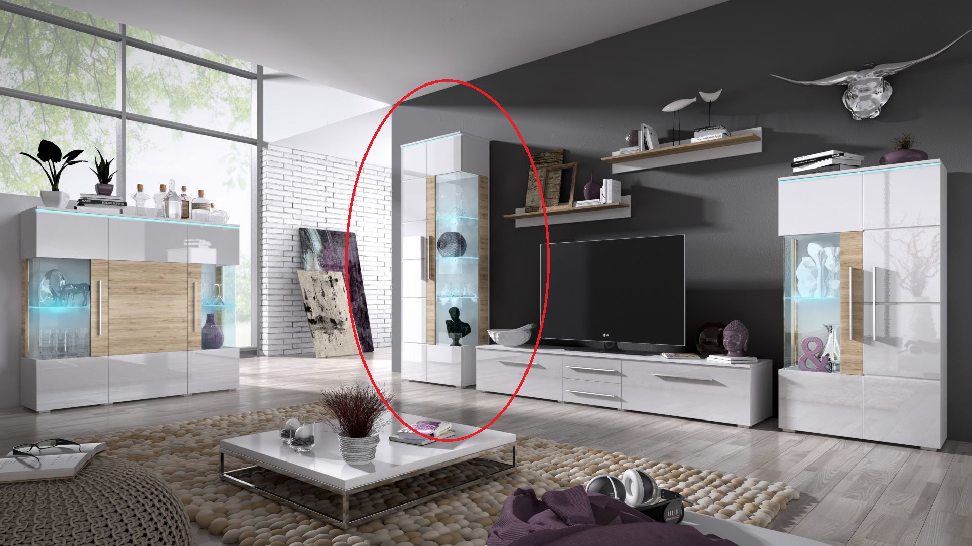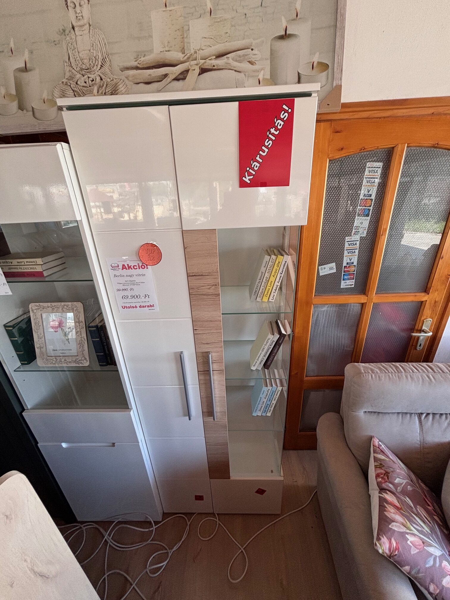 Esztétikus, harmonikus megjelenésű vitrin modern színösszeállításban.