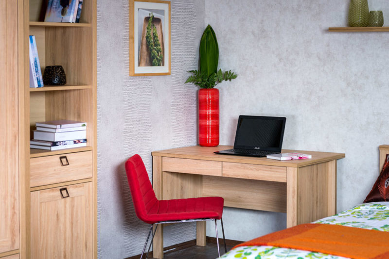 Világos sonoma tölgy vagy sötét sonoma tölgy színben választható, két fiókos íróasztal. Egyszerű, letisztult forma, minőségi kivitel, erős felépítés jellemzi. Magyar termék, megerősített ABS élzárással.