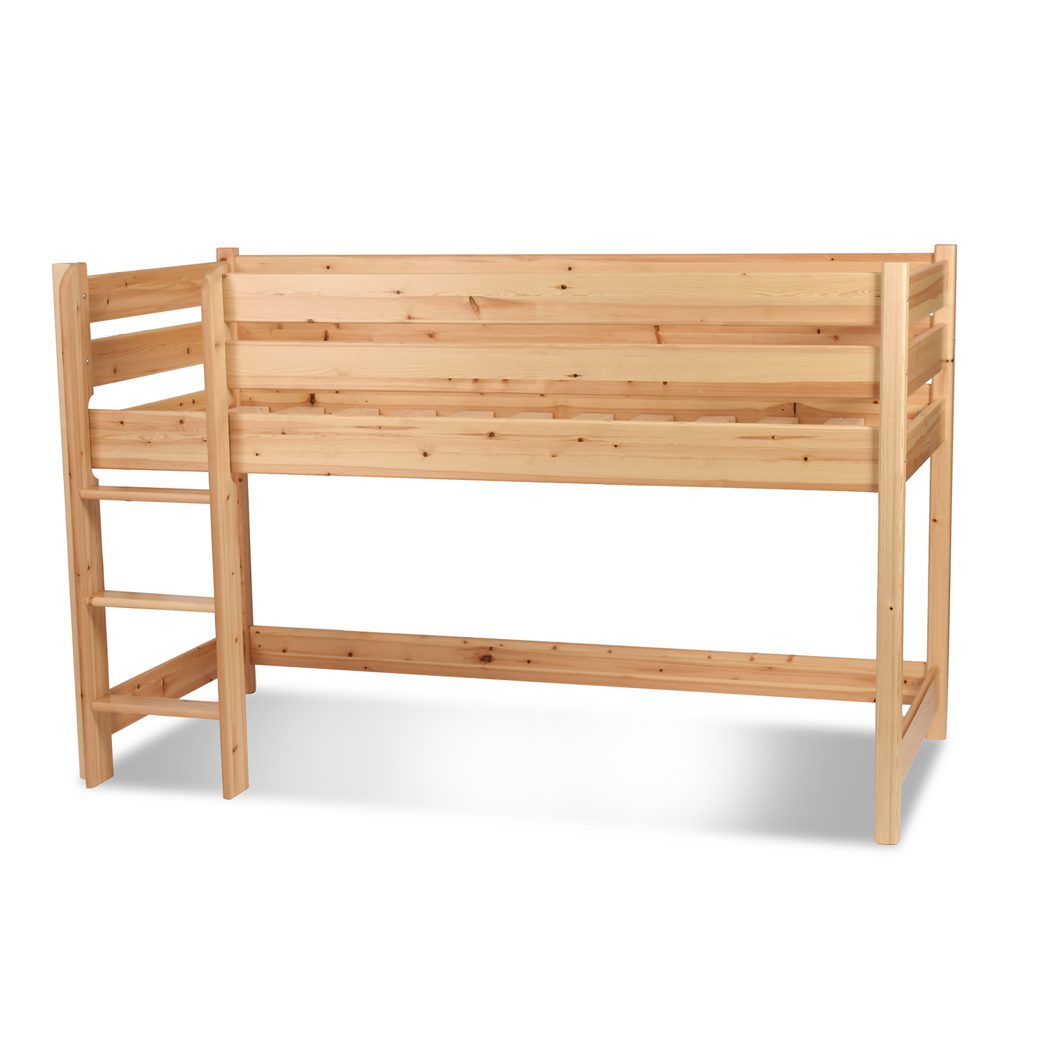 Milyen izgalmas egy kuckó fölött aludni – gyerekként?! Szülőként meg praktikus és helytakarékos megoldás egy emelt ágy a szobában, hiszen az alatta lévő tér sok mindenre kihasználható! Az egyenes létra rész mind jobb, mind bal oldalra felszerelhető. Az ágy alapanyaga kiváló minőségű borovifenyő. A bordasor az ágy tartozéka, teteje a padlótól 86 cm. Létra szélessége 40 cm. Az ágy külső méretei: magasság: 130 cm, szélesség: 98 cm, hosszúság: 207,8 cm.