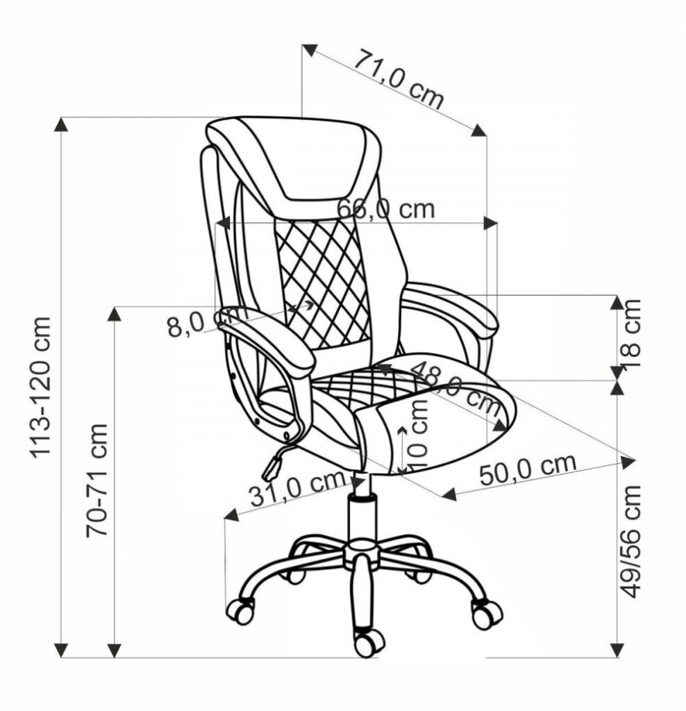 A masszív fém szerkezet stabil alapot ad, a görgős talp pedig könnyű mozgást tesz lehetővé a munkaterületen. A szék ülésmagassága állítható, így különböző testmagasságú felhasználók számára is kényelmesen beállítható.