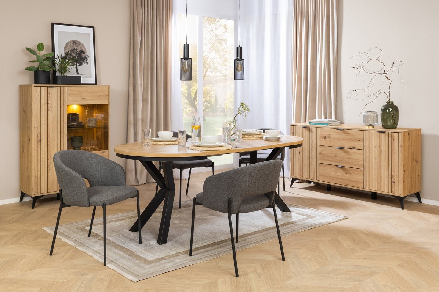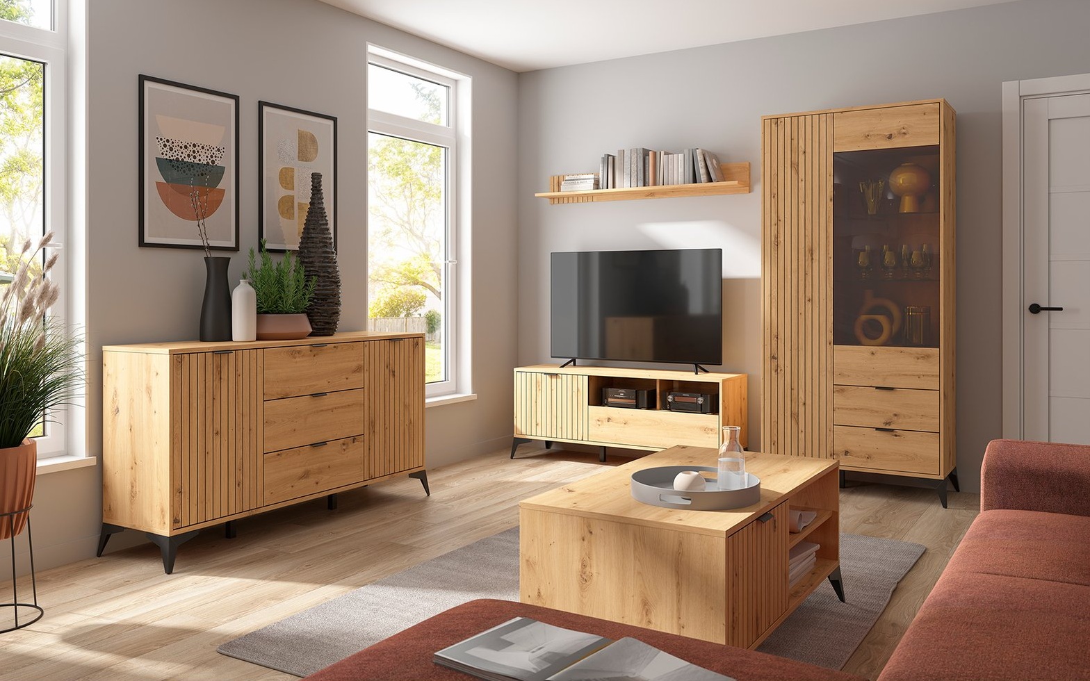 Az elemválaszték rendkívül széles, nappali és étkező berendezéséhez is ideális komódok, szekrények állnak rendelkezésre, de van pl. TV állvány is, íróasztal, vagy éppen falra szerelhető polc.