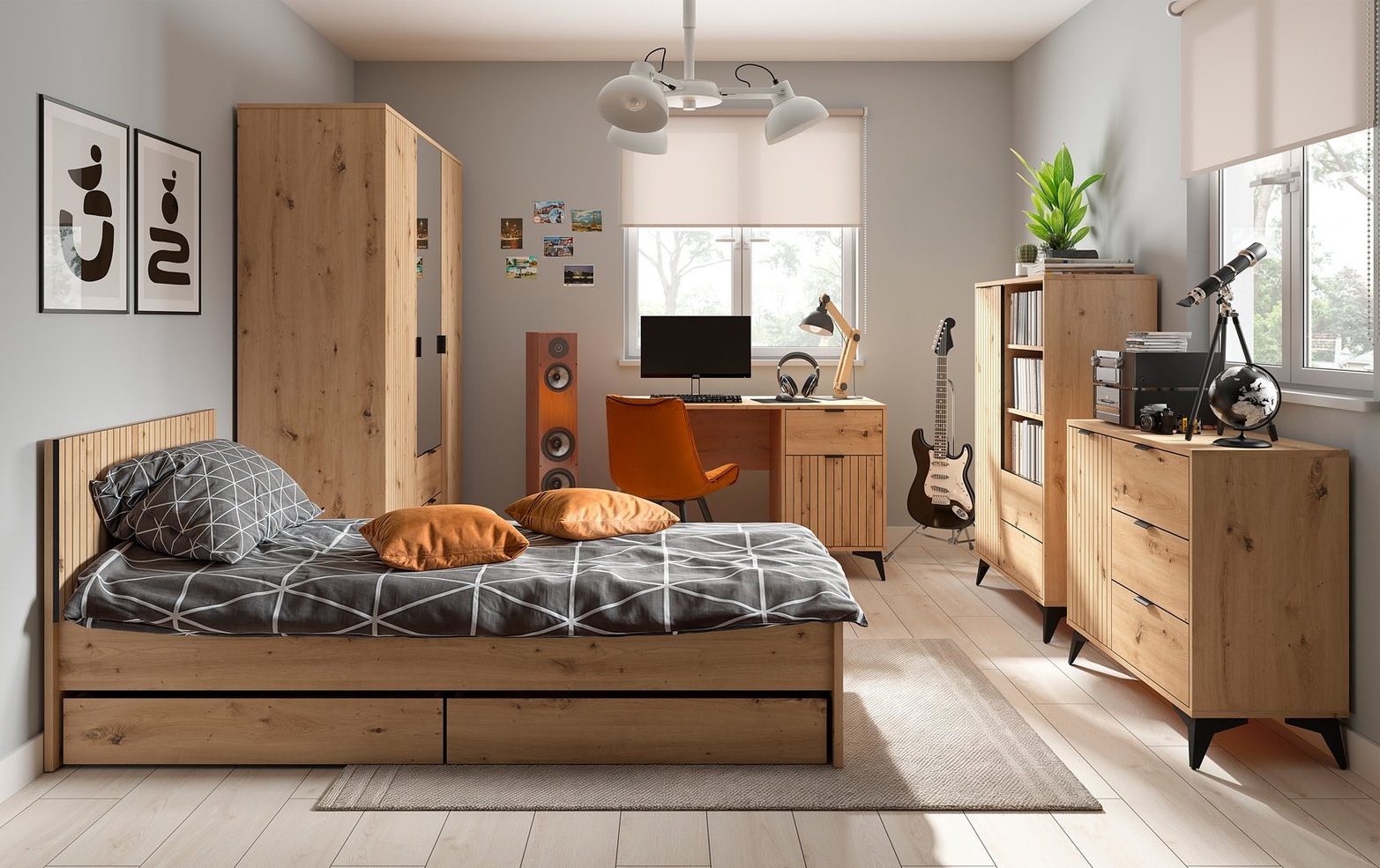 Az elemválaszték rendkívül széles, hálószoba vagy ifjúsági szoba berendezéséhez is ideális. Komódok, ruhásszekrények állnak rendelkezésre, de van pl. ágyneműtartós franciaágy, egyszemélyes ágy tárolóval, íróasztal, vagy éppen falra szerelhető polc is.