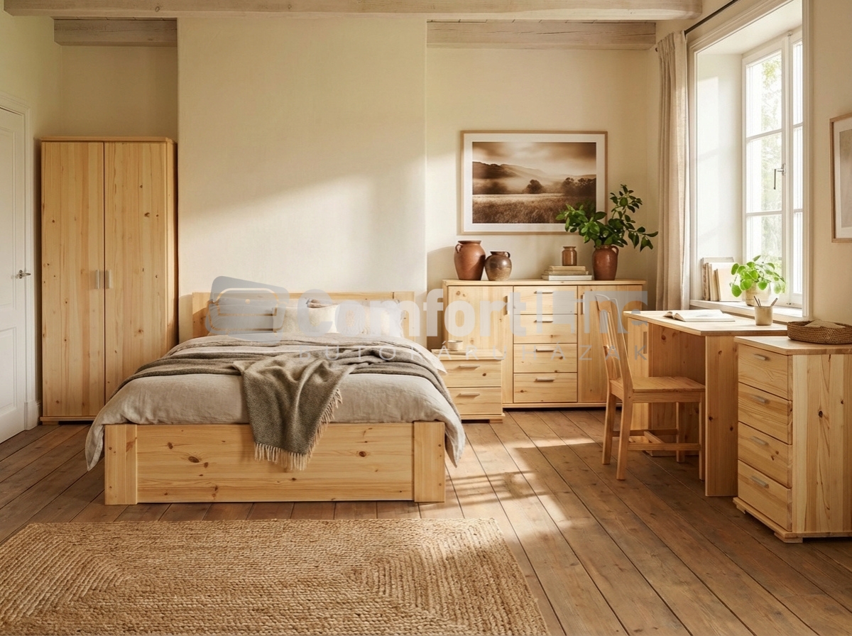 A Nobis fenyőbútor család elemeivel így kreatívan rendezhető be, tartós, időtálló modern fenyőfa bútorokkal hálószoba, étkező, előszoba, nappali vagy akár vendégszoba, apartman is.