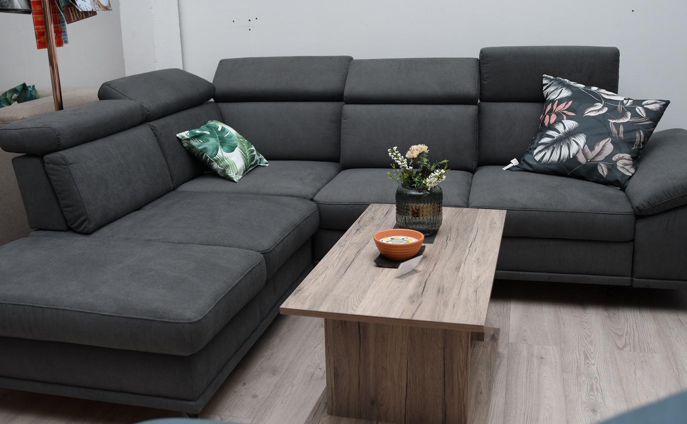 Modern, fiatalos, igényes sarokgarnitúra választható sarokággyal, ágyneműtartóval, állítható támla- és karfafunkcióval. Kisebb vagy nagyobb „L” sarokkanapé változatban is elérhető.